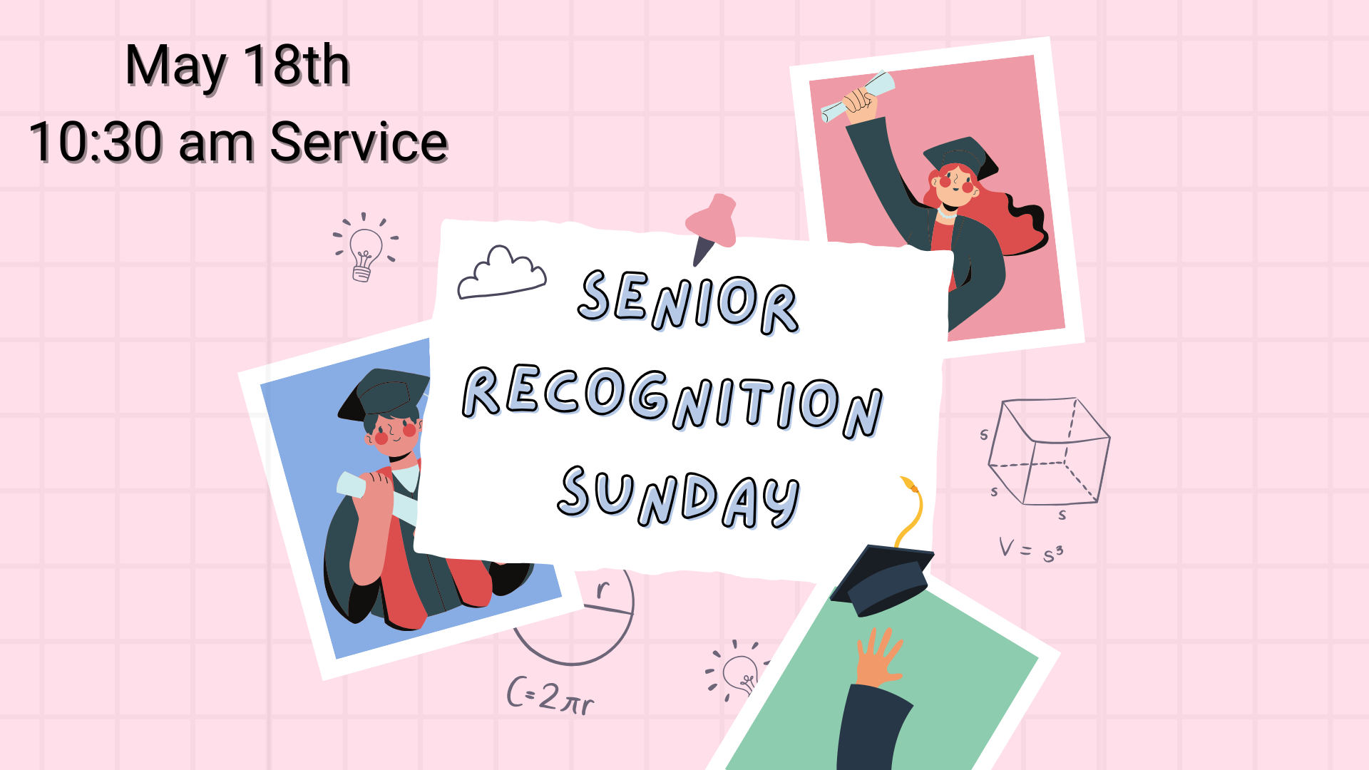 Every year, we recognize and celebrate the accomplishments of our graduating seniors. On Sunday, May 10th, we will honor the following seniors who are graduating this May during the 10:30 service :